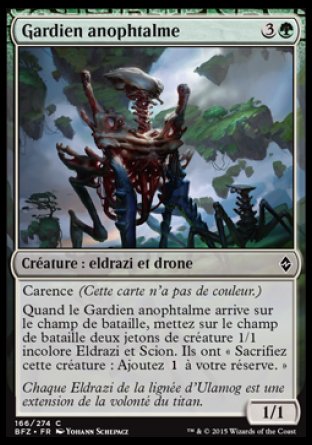 Quand cette créature arrive, créez deux jetons de créature 1/1 incolore Eldrazi et Scion. Ils ont "Sacrifiez ce jeton : Ajoutez  ."