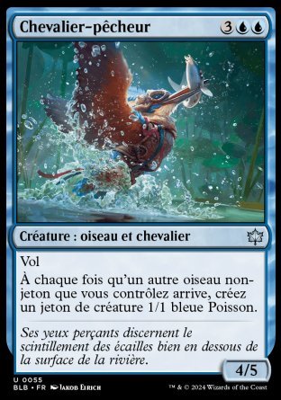 À chaque fois qu'un autre oiseau non-jeton que vous contrôlez arrive, créez un jeton de créature 1/1 bleue Poisson.