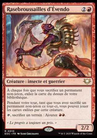 Pendant votre tour, tant que vous avez sacrifié un permanent non-jeton ce tour-ci, vous pouvez jouer les cartes exilées par cette créature.