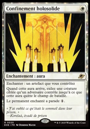 La carte Hardlight Containment reprend cette mécanique, le permanent auquel elle est attachée étant transposé d'un terrain à un artefact.