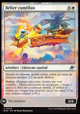 Quand ce vaisseau spatial arrive, créez un jeton de créature 2/2 incolore Robot artefact.