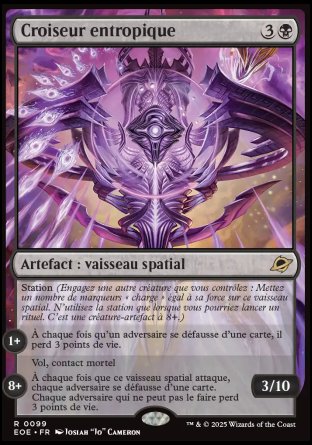 À chaque fois que ce vaisseau spatial attaque, chaque adversaire se défausse d'une carte. Chaque adversaire qui ne peut pas le faire perd 3 points de vie.