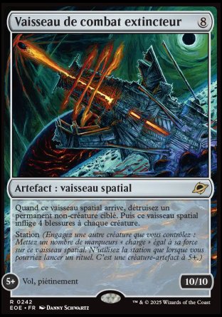 Quand ce vaisseau spatial arrive, détruisez un permanent non-créature ciblé. Puis ce vaisseau spatial inflige 4 blessures à chaque créature.