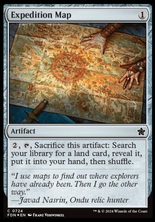 ,  , sacrifiez cet artefact : Cherchez dans votre bibliothèque une carte de terrain, révélez-la, mettez-la dans votre main, puis mélangez.