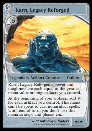 Le saviez-vous ? Sur l'illustration originale de Anthony S. Waters pour la carte Karn, de l'édition Vanguard, il y a un gobelin au-dessus de Karn. C'est pour cette raison qu'il a les yeux levés.