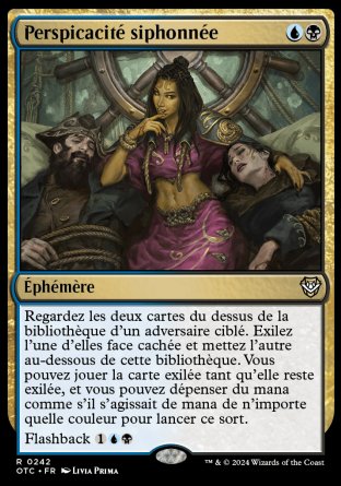 Regardez les deux cartes du dessus de la bibliothèque d'un adversaire ciblé. Exilez l'une d'elles face cachée et mettez l'autre au-dessous de cette bibliothèque. Vous pouvez jouer la carte exilée tant qu'elle reste exilée, et vous pouvez dépenser du mana comme s'il s'agissait de mana de n'importe quelle couleur pour lancer ce sort.