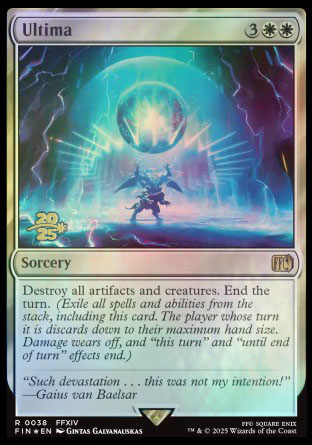 Détruisez tous les artefacts et toutes les créatures. Terminez le tour. (Exilez tous les sorts et toutes les capacités sur la pile, y compris cette carte. Le joueur dont c'est le tour se défausse de cartes jusqu'à sa taille de main maximale. Les blessures disparaissent et les effets "ce tour-ci" et "jusqu'à la fin du tour" se terminent.)