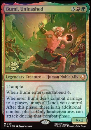 Whenever Bumi deals combat damage to a player, untap all lands you control. After this phase, there is an additional combat phase. Only land creatures can attack during that combat phase.
