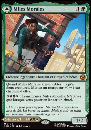 Quand Miles Morales arrive, ciblez jusqu'à deux créatures. Mettez un marqueur +1/+1 sur chacune d'elles.