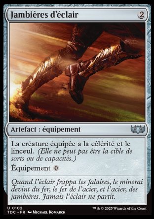 Équipement (: Attachez à la créature ciblée que vous contrôlez. N'équipez que lorsque vous pourriez lancer un rituel. Cette carte arrive détachée et elle reste sur le champ de bataille si la créature le quitte.)