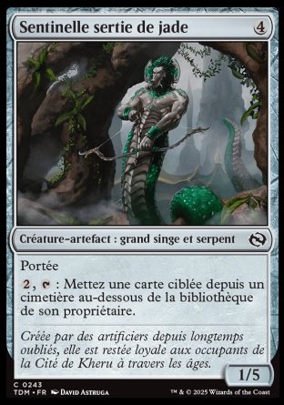 Le saviez-vous ? La carte Jade-Cast Sentinel est une référence à Thieving Amalgam de par ses types de créature grand singe et serpent, propres à cette seule espèce de créature originaire de Tarkir.