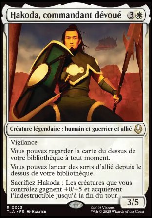 Sacrifiez Hakoda : Les créatures que vous contrôlez gagnent +0/+5 et acquièrent l' indestructible (Les effets qui disent "détruisez" ne détruisent pas ce permanent. Une créature indestructible ne peut pas être détruite par des blessures.) jusqu'à la fin du tour.