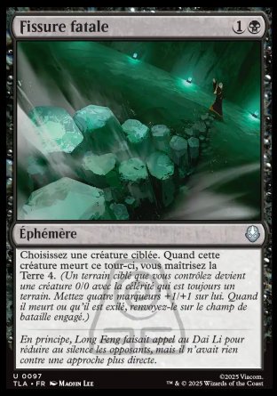 Choisissez une créature ciblée. Quand cette créature meurt ce tour-ci, you maîtrisez la Terre 4 (Un terrain ciblé que vous contrôlez devient une créature 0/0 avec la célérité (Cette créature peut attaquer, et dès qu'elle arrive sous votre contrôle.) qui est toujours un terrain. Mettez quatre marqueurs +1/+1 sur lui. Quand il meurt ou qu'il est exilé, renvoyez-le sur le champ de bataille engagé.).