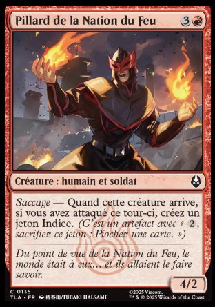 Saccage — Quand cette créature arrive, si vous avez attaqué ce tour-ci, créez un jeton Indice (Un indice est un artefact avec " , sacrifiez cet artefact : Piochez une carte.").