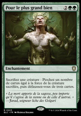 Sacrifiez une créature : Piochez autant de cartes que la force de la créature sacrifiée, puis défaussez-vous de trois cartes.