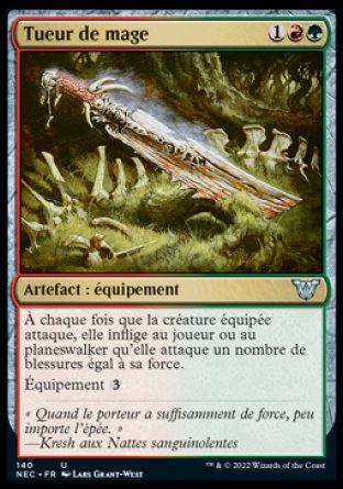 Équipement (: Attachez à la créature ciblée que vous contrôlez. N'équipez que lorsque vous pourriez lancer un rituel. Cette carte arrive détachée et elle reste sur le champ de bataille si la créature le quitte.)