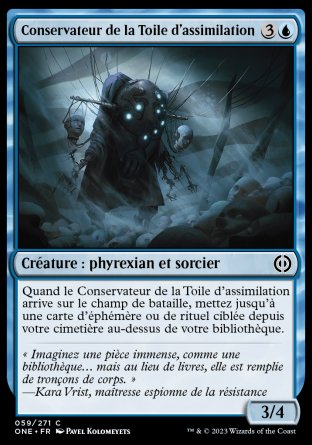 Quand le Conservateur de la Toile d'assimilation arrive, mettez jusqu'à une carte d'éphémère ou de rituel ciblée depuis votre cimetière au-dessus de votre bibliothèque.