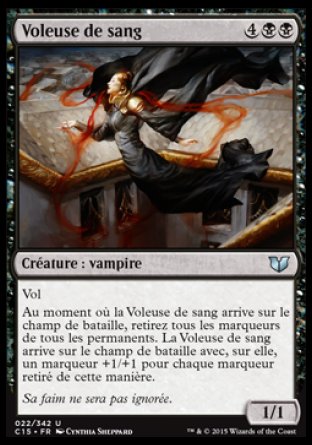 Au moment où la Voleuse de sang arrive, retirez tous les marqueurs de tous les permanents. La Voleuse de sang arrive avec, sur elle, un marqueur +1/+1 pour chaque marqueur retiré de cette manière.