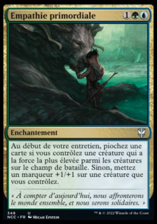 Au début de votre entretien, piochez une carte si vous contrôlez une créature qui a la force la plus élevée parmi les créatures sur le champ de bataille. Sinon, mettez un marqueur +1/+1 sur une créature que vous contrôlez.