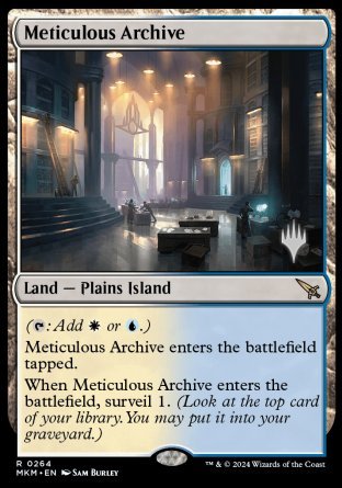 Quand les Archives méticuleuses arrivent, surveillez 1 (Regardez la carte du dessus de votre bibliothèque. Vous pouvez mettre cette carte dans votre cimetière.).
