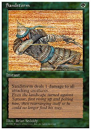 Sandstorm deals 1 damage to each attacking creature.