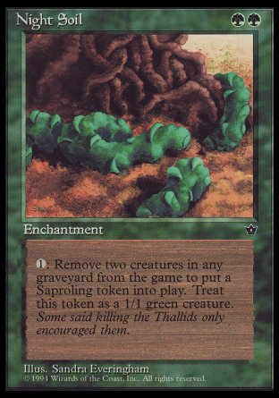 , exilez deux cartes de créature d'un cimetière unique : Créez un jeton de créature 1/1 verte Saprobionte.
