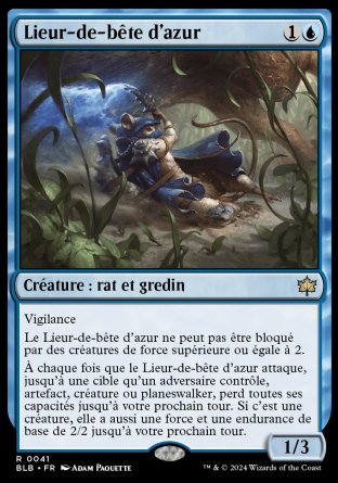 Le Lieur-de-bête d'azur ne peut pas être bloqué par des créatures de force supérieure ou égale à 2.