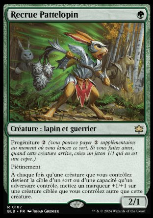 Progéniture (Vous pouvez payer supplémentaires au moment où vous lancez ce sort. Si vous faites ainsi, quand cette créature arrive, créez un jeton 1/1 qui en est une copie.)Piétinement (Cette créature peut infliger les blessures de combat en excès au joueur ou au planeswalker qu'elle attaque.)