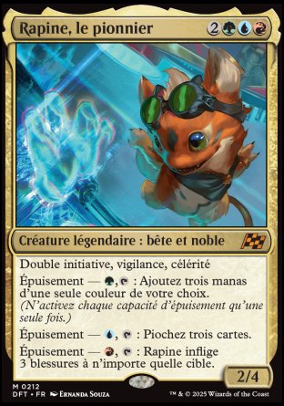 Le saviez-vous ? Les cinq cartes Floodfarm Verge, Gloomlake Verge, Blazemire Verge, Thornspire Verge et Hushwood Verge, de l'édition Duskmourn: House of Horrors, ainsi que les cinq cartes Bleachbone Verge, Riverpyre Verge, Wastewood Verge, Sunbillow Verge et Willowrush Verge, de l'édition Aetherdrift, forment un cycle de terrains appelé "Verge". De plus leurs textes d'ambiance se font écho. Chacun mentionne respectivement une des cinq zones de la Maison régie par un "Overlord" (voir cette anecdote) ou les aventures de Loot, the Pathfinder qui apparaît d'ailleurs sur les illustrations de chacune des cinq cartes de l'édition Aetherdrift. Les capacités d'Épuisement de Loot, the Pathfinder font référence au premier cycle de cartes de Magic (voir cette anecdote) de par leur coût d'activation et leur effet : les capacités coûtant et correspondent directement à Ancestral Recall (sauf si on fait piocher un adversaire!) et Lightning Bolt, tandis que la capacité coûtant est quant à elle un mélange entre Dark Ritual et Black Lotus (thématiquement proche du cycle), la production de mana de n'importe quelle couleur étant plus adaptée à la couleur verte selon la color pie.