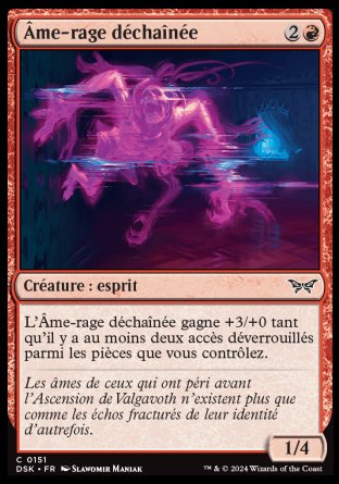 L'Âme-rage déchaînée gagne +3/+0 tant qu'il y a au moins deux accès déverrouillés parmi les pièces que vous contrôlez.