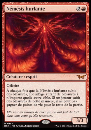 À chaque fois que la Némésis hurlante subit des blessures, elle inflige autant de blessures à n'importe quelle autre cible. Si un joueur subit des blessures de cette manière, il ne peut pas gagner de points de vie pour le reste de la partie.