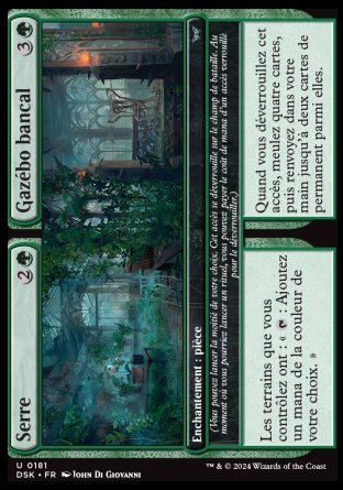 Quand vous déverrouillez cet accès, meulez (Pour meuler une carte, un joueur met la carte du dessus de sa bibliothèque dans son cimetière.) quatre cartes, puis renvoyez dans votre main jusqu'à deux cartes de permanent parmi elles.