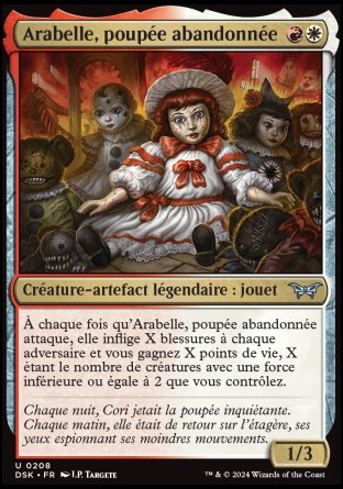 À chaque fois qu'Arabelle attaque, elle inflige X blessures à chaque adversaire et vous gagnez X points de vie, X étant le nombre de créatures avec une force inférieure ou égale à 2 que vous contrôlez.