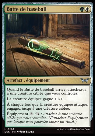 Quand la Batte de baseball arrive, attachez-la à une créature ciblée que vous contrôlez.