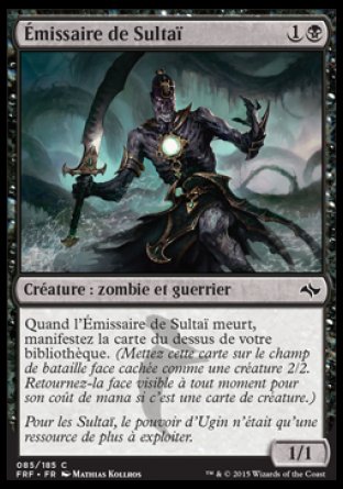 Quand l'Émissaire de Sultaï meurt, manifestez la carte du dessus de votre bibliothèque (Pour manifester une carte, mettez-la sur le champ de bataille face cachée comme une créature 2/2. Retournez-la face visible à tout moment pour son coût de mana si c'est une carte de créature.).