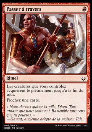 Les créatures que vous contrôlez acquièrent le piétinement (Cette créature peut infliger les blessures de combat en excès au joueur ou au planeswalker qu'elle attaque.) jusqu'à la fin du tour.