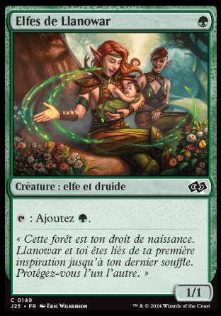 Llanowar Visionary est inspiré des cartes Llanowar Elves et Elvish Visionary en cumulant leurs noms, leurs coûts de mana, leurs effets et leurs forces et endurances.