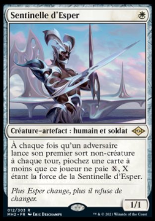 À chaque fois qu'un adversaire lance son premier sort non-créature à chaque tour, piochez une carte à moins que ce joueur ne paie , X étant la force de la Sentinelle d'Esper.