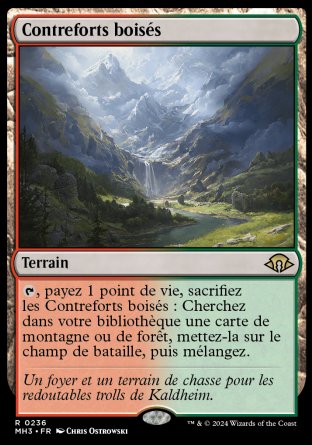 , payez 1 point de vie, sacrifiez ce terrain : Cherchez dans votre bibliothèque une carte de montagne ou de forêt, mettez-la sur le champ de bataille, puis mélangez.