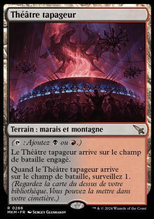 Quand ce terrain arrive, surveillez 1 (Regardez la carte du dessus de votre bibliothèque. Vous pouvez mettre cette carte dans votre cimetière.).