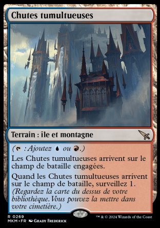 Quand les Chutes tumultueuses arrivent, surveillez 1 (Regardez la carte du dessus de votre bibliothèque. Vous pouvez mettre cette carte dans votre cimetière.).