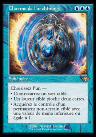 Le saviez-vous ? La carte Archmage's Charm est une référence à Cryptic Command de par son coût comprenant trois manas colorés et ses multiples choix, dont le fait de pouvoir contrer ou piocher.