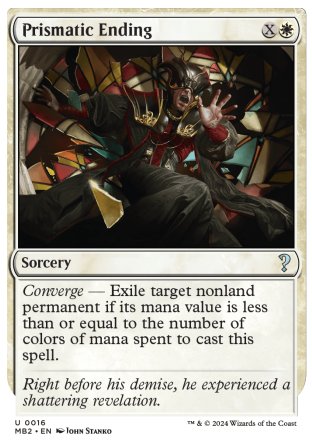 Le saviez-vous ? Les cinq cartes Prismatic Ending, Sweep the Skies, Radiant Epicure, Kaleidoscorch et Glinting Creeper, de l'édition Modern Horizons II, forment un cycle de rituels/créatures peu communs avec la Convergence.
