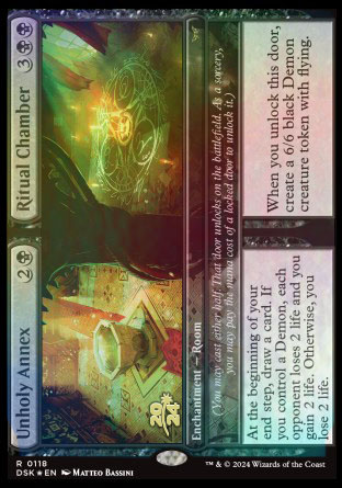 (You may cast either half. That door unlocks on the battlefield. As a sorcery, you may pay the mana cost of a locked door to unlock it.)