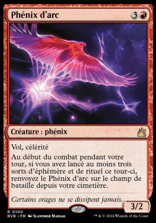 Au début du combat pendant votre tour, si vous avez lancé au moins trois sorts d'éphémère et/ou de rituel ce tour-ci, renvoyez cette carte sur le champ de bataille depuis votre cimetière.