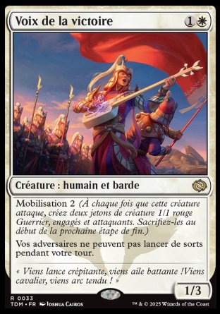 Mobilisation 2 (À chaque fois que cette créature attaque, créez deux jetons de créature 1/1 rouge Guerrier, engagés et attaquants. Sacrifiez-les au début de la prochaine étape de fin.)