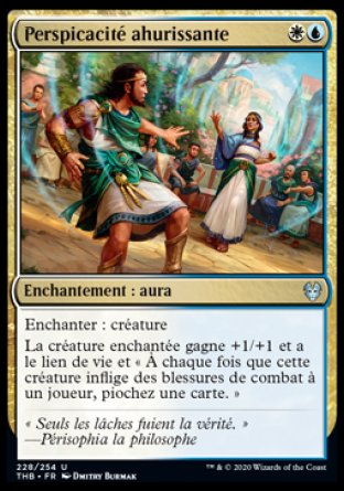 Le saviez-vous ? Les dix cartes Staggering Insight, Devourer of Memory, Slaughter-Priest of Mogis, Warden of the Chained, Siona, Captain of the Pyleas, Rise to Glory, Mischievous Chimera, Acolyte of Affliction, Hero of the Nyxborn et Eutropia the Twice-Favored, de l'édition Theros Beyond Death, forment un cycle de sorts bicolores peu communs soutenant chacun un archétype de formats limités.
