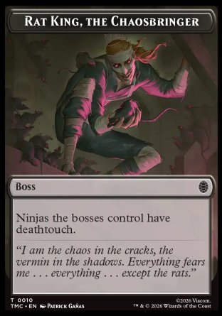 Ninjas the bosses control have deathtouch (Any amount of damage this deals to a creature is enough to destroy it.).