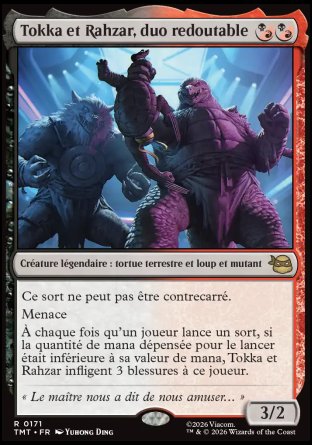À chaque fois qu'un joueur lance un sort, si la quantité de mana dépensée pour le lancer était inferieure à sa valeur de mana, Tokka et Rahzar infligent 3 blessures à ce joueur.