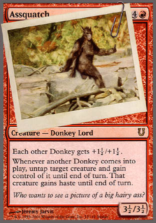 Les cinq cartes Cheap Ass, Smart Ass, Bad Ass, Dumb Ass et Fat Ass, de l'édition Unhinged, forment un cycle appelé "Ass" de créatures Baudets avec la spécificité d'avoir toutes une force ou une endurance comportant une fraction ½. Leur "Lord" (voir cette anecdote) est Assquatch, tandis que leur "maison" est la City of Ass. |